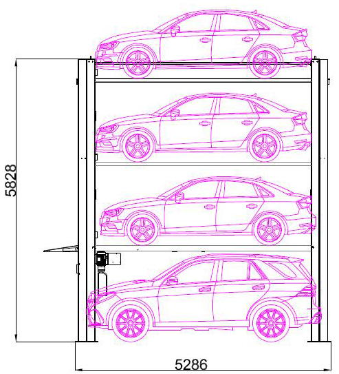 4 Levels Automotive Lifts for Garage is an ideal solution for maximizing parking capacity, allowing you to expand your garage space vertically by up to four times. Each level is designed with a specific load capacity: the second level supports 2500 kg, while the third and fourth levels each support 2000 kg.