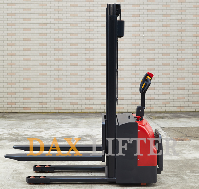 Mini Pallet Truck is an economical all-electric stacker that offers high cost performance. With a net weight of just 665kg, it is compact in size yet boasts a load capacity of 1500kg, making it suitable for most storage and handling needs. The centrally positioned operating handle ensures ease of use and stability during operation. Its small turning radius is ideal for maneuvering in narrow passages and tight spaces. The body features an H-shaped steel gantry constructed using a pressing process, ensuring sturdiness and durability.