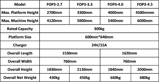 Warehouse order pickers have a variety of platform heights, which can be selected according to the actual situation of the warehouse and the height requirements of the goods. Common platform heights are 2.7m, 3.3m, etc. These different height options greatly meet the pickup needs of goods at different heights in the warehouse.