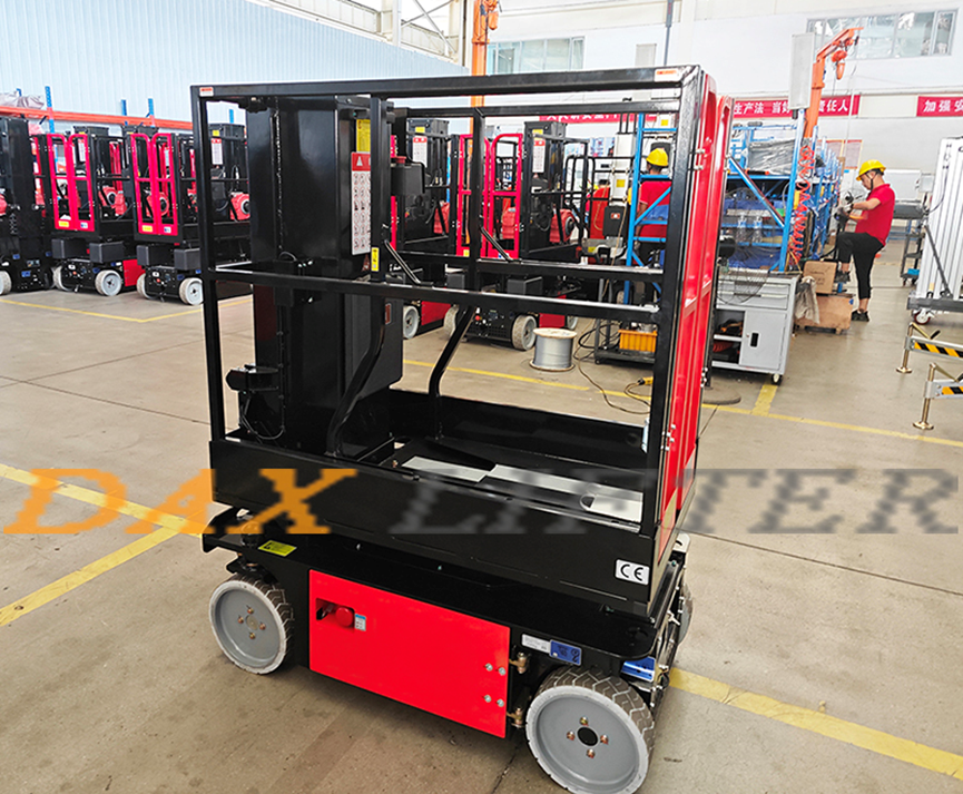 Single man lifts are powered by batteries. This advantage greatly expands the working range of the one-person self-propelled lift. There is no need to find a plug hole when working, which is more convenient. And during the work process, the operator can directly control the lifting of the platform and the movement of the one man lift on the platform. Even when working in a large factory or warehouse, the operator can easily move to a designated position without dragging, and even more save time and effort.